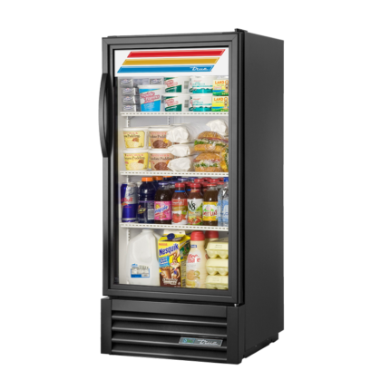 The True Manufacturing GDM-10-HC~TSL01_BL Refrigerated Merchandiser delivers a dependable, single-section solution for showcasing chilled items in a wide range of