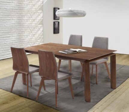 Treviso 5-Piece Mid-Century Modern Dining Set with Walnut Table & 4 Comfortable Gray Chairs