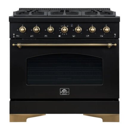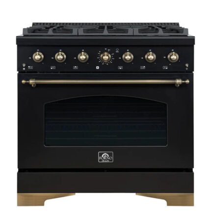 The Forno Espresso Antico 36″ Gas Range in white blends professional-grade performance with vintage-inspired elegance. Featuring six sealed burners with