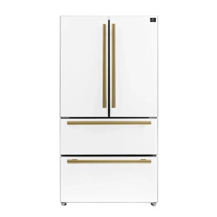 The Forno Espresso 36″ French Door Refrigerator in White delivers contemporary elegance paired with advanced cooling performance. Designed for households