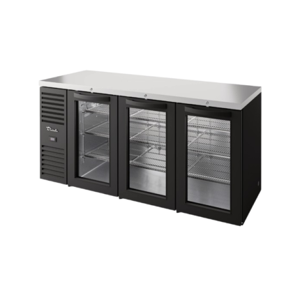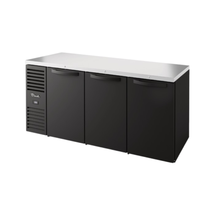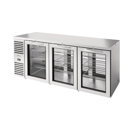 The True Manufacturing TBR72-RISZ1-L-S-GGG-1 is a three-section refrigerated back bar unit designed to provide dependable, efficient cold storage for beverages.