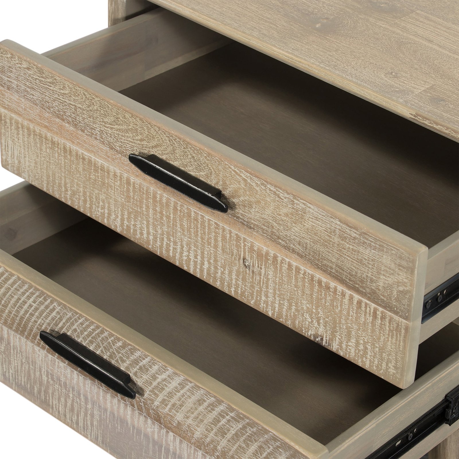 The Armen Living Baly acacia mid-century 2-drawer nightstand is a versatile addition to your bedroom or living room, doubling as an end table. Its functional storage design includes two soft-close drawers, perfect for keeping essentials within easy reach of your bed or sofa. Crafted with an easy-to-clean acacia wood top, this nightstand ensures quick and effortless maintenance.Â