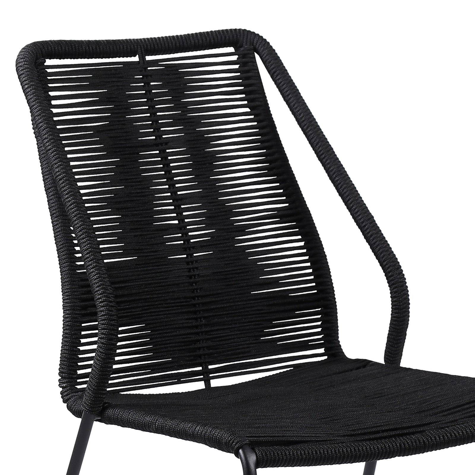 The accompanying Clip chairs showcase expert craftsmanship, featuring durable metal legs in a sleek black finish for a contemporary look. Designed for both indoor and outdoor use, the UV-coated, hand-dyed nylon cords offer subtle tonal variations for added charm.