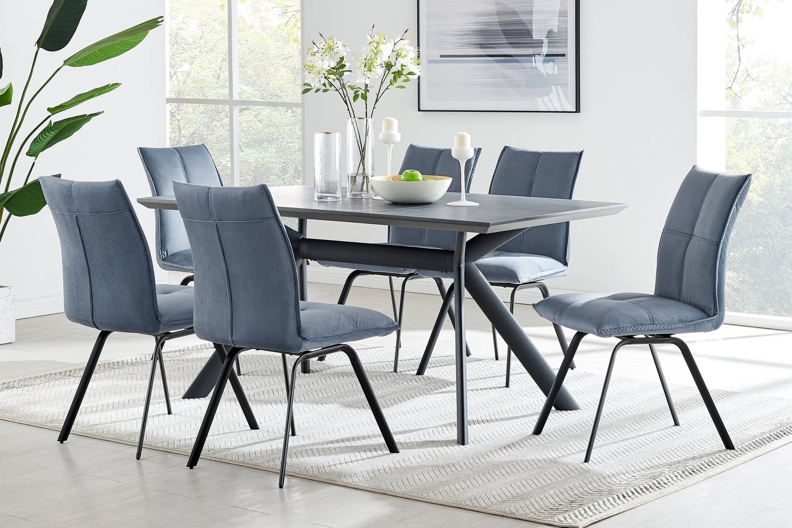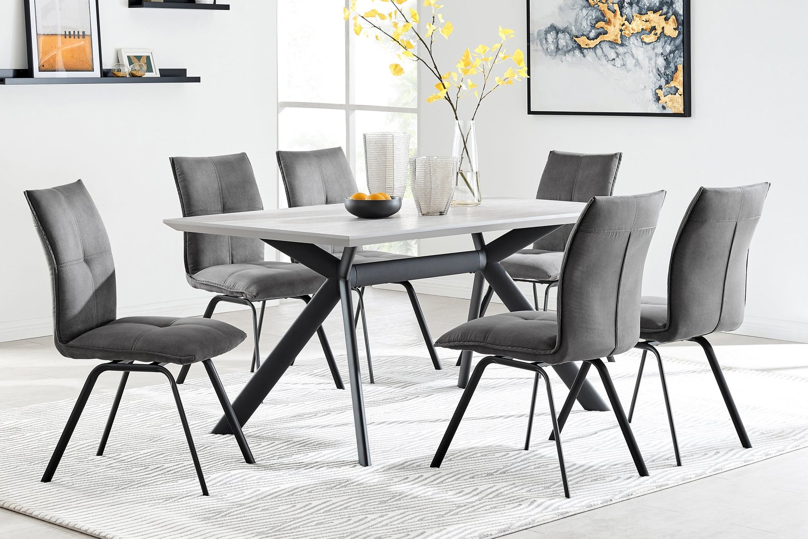 Infuse your space with sophistication using the Margot Dark Gray Rhine Top with Black Metal Dining Table from Armen Living. Boasting a modern design, this table is perfect for hosting family dinners or entertaining guests. Crafted with durability in mind, it features robust materials that withstand everyday use effortlessly. Its spacious and sturdy construction comfortably accommodates large families or groups. The wide base adds a bold and striking visual element, sure to catch the eye from across the room. Available with a light gray or dark gray tabletop, it pairs beautifully with dining chairs from any of Armen Living’s collections.