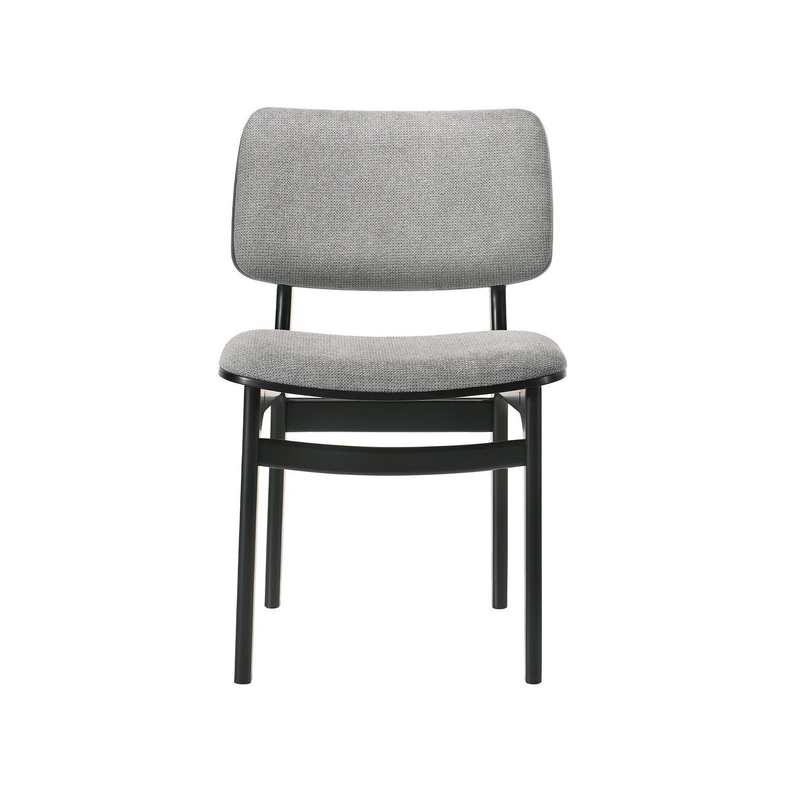 – Set includes 1 table with a marble top in a dark finish, and 4 upholstered Varde gray chairs Â