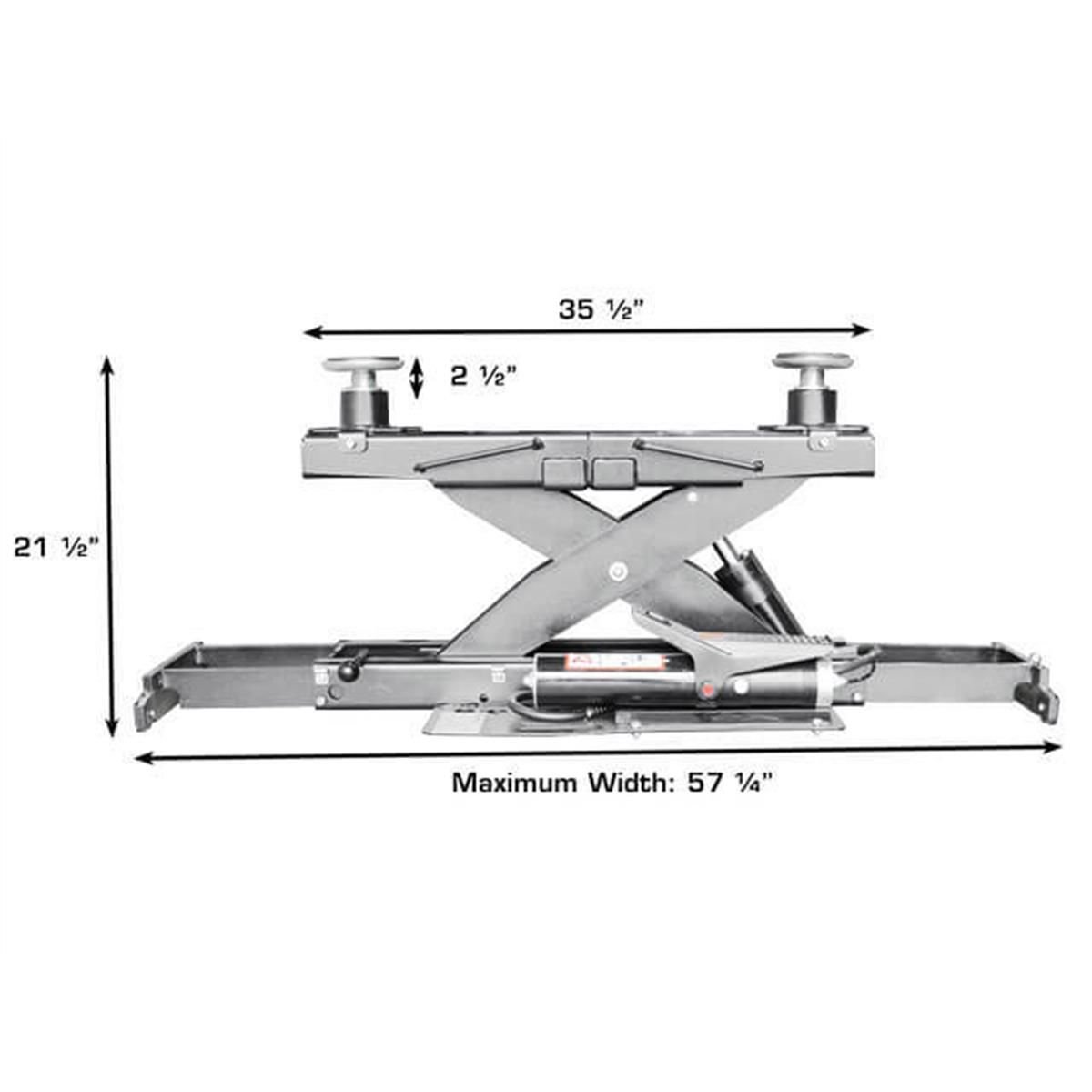 This package also includes two ALI Certified Atlas® Platinum RJ7000 Rolling Bridge Jacks. These bridge jacks allow technicians to raise the vehicle’s wheels off the runways for brake and tire service.