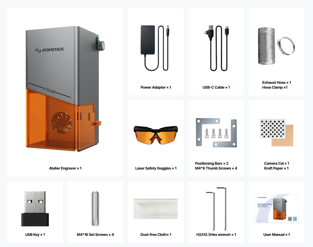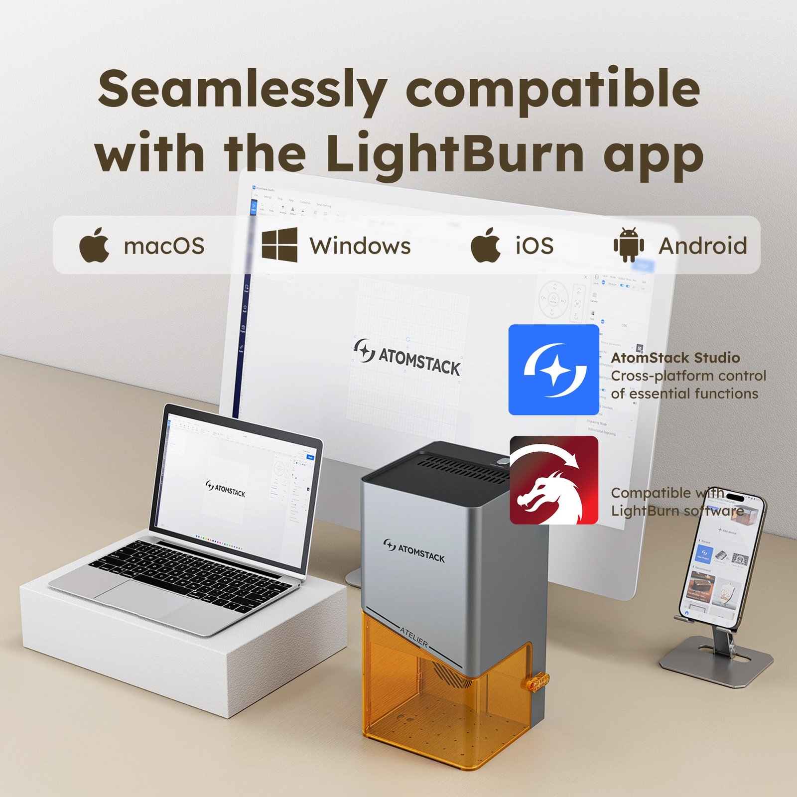 | Supported Accessories (Sold Separately) | Official: AtomStack Studio (Android / iOS / Windows / macOS) Compatible: LightBurn (Unofficial – requires separate license) |