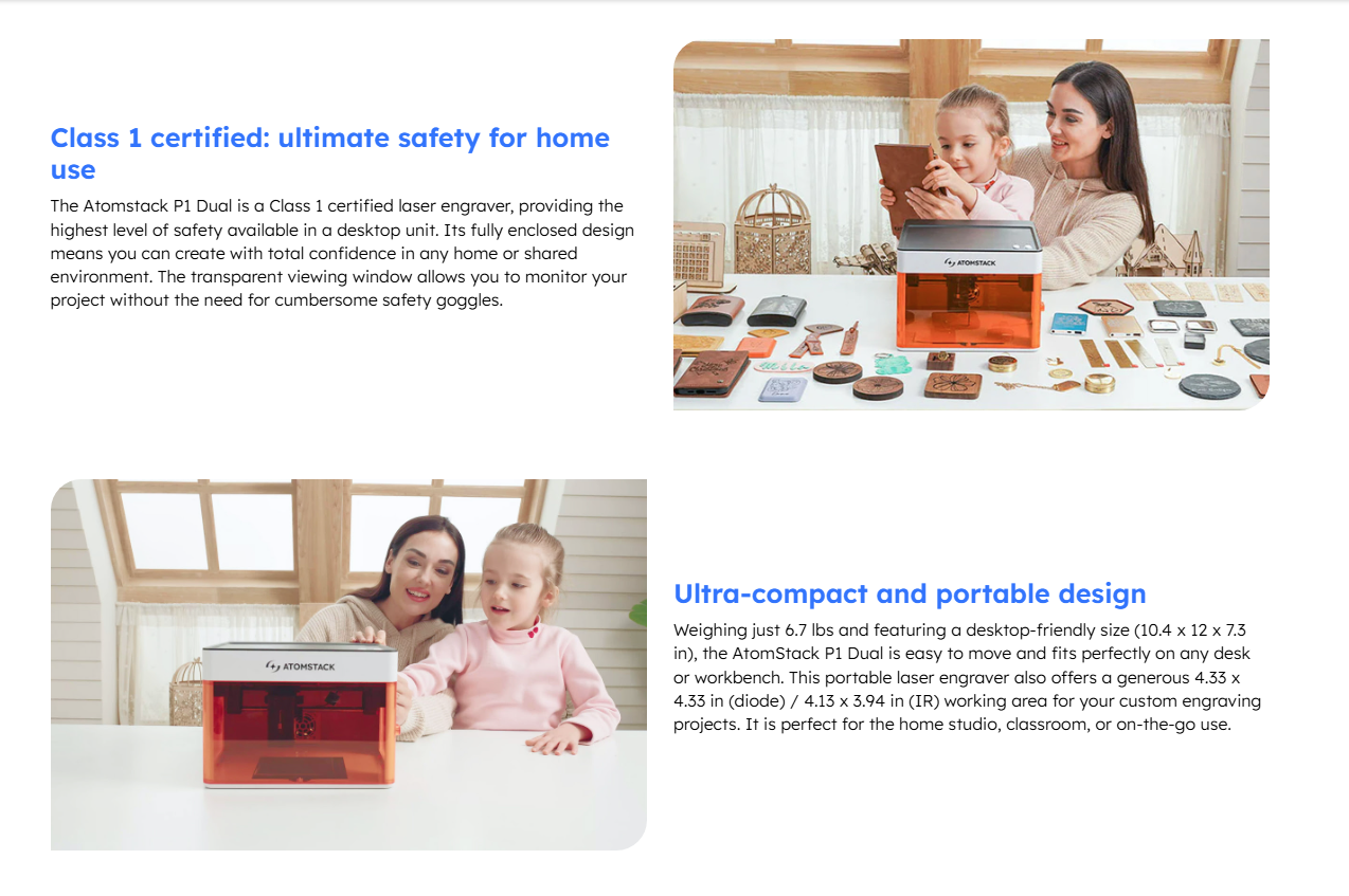 AtomStack P1 Dual Laser Engraver – 5 W Diode + 1.2 W IR