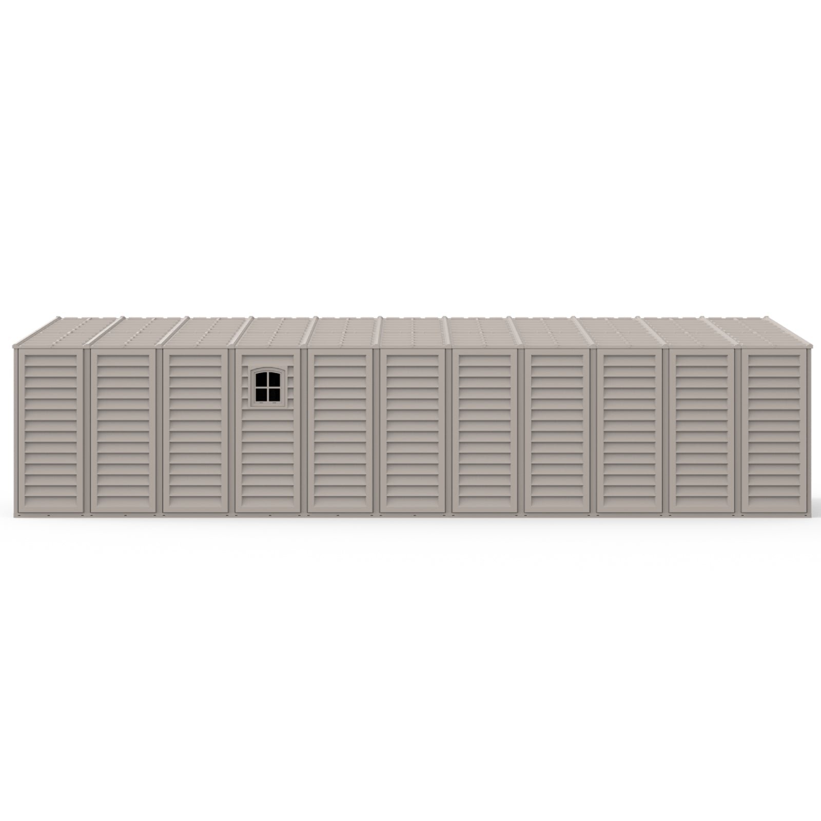 Built with metal-reinforced columns and roof trusses, it is designed to withstand at least 20 lbs per square foot of snow, ensuring stability even in harsh weather. The garage resists rust, dents, rot, mildew, and fading, providing long-lasting protection with minimal upkeep. Its neutral ivory color delivers a clean, attractive appearance that complements any property.
