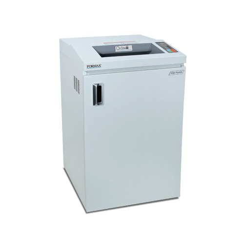 The Formax FD87 Plasti Shredder is built to the highest standards for operator convenience, safety and reliability. The FD87 Plasti features a two-stage dual-blade system to quickly shred plastic sheets, laminated cards, paper and more.