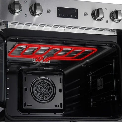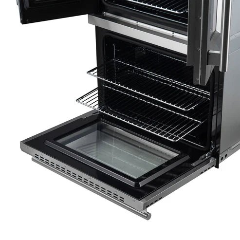 The Atsi Double Wall Oven by Forno is engineered for performance-driven kitchens that demand versatility, precision, and refined aesthetics. Constructed in stainless steel with a sleek black interior, this 30-inch double wall oven delivers a total capacity of 7.36 cu. ft. across two independently controlled true convection ovens.