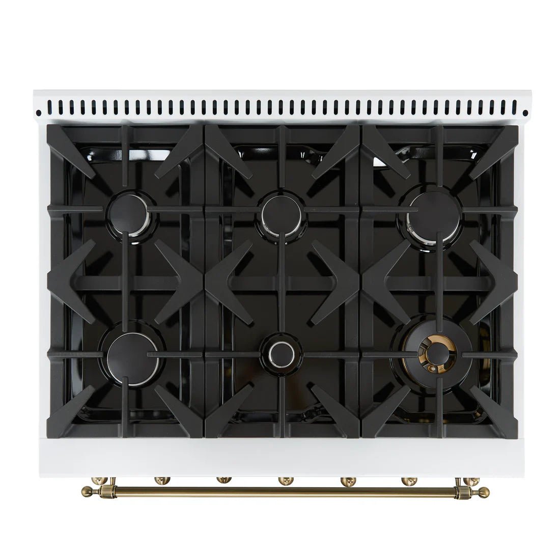 FORNO Antico 36″ 4.5 cu. ft. Dual Fuel Range with 6 Sealed Burners in White with Antique Brass Accents, FFSGS6113-36WHT