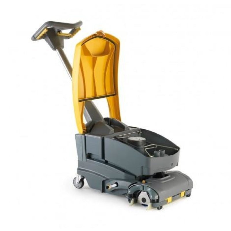 Purchase the NRG, New Rolly Generation, the latest series of compact auto scrubbers designed for superior cleaning results! The GHROLLY 7, part of this innovative series, excels in tight spaces with its 7.5 liters capacity packed into ultra-compact dimensions. Its articulated handle and swivel rear wheels enable agile and continuous operation, even in the most confined areas.