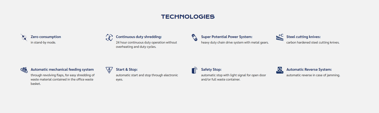 Powered by a durable 2.9 HP motor, this shredder operates with strength and consistency, while the 53-gallon steel cabinet provides ample waste storage. Certified ETL, CB, CE, and compliant with TAA and the Buy American Act, it’s ideal for businesses needing reliable, high-volume document destruction.