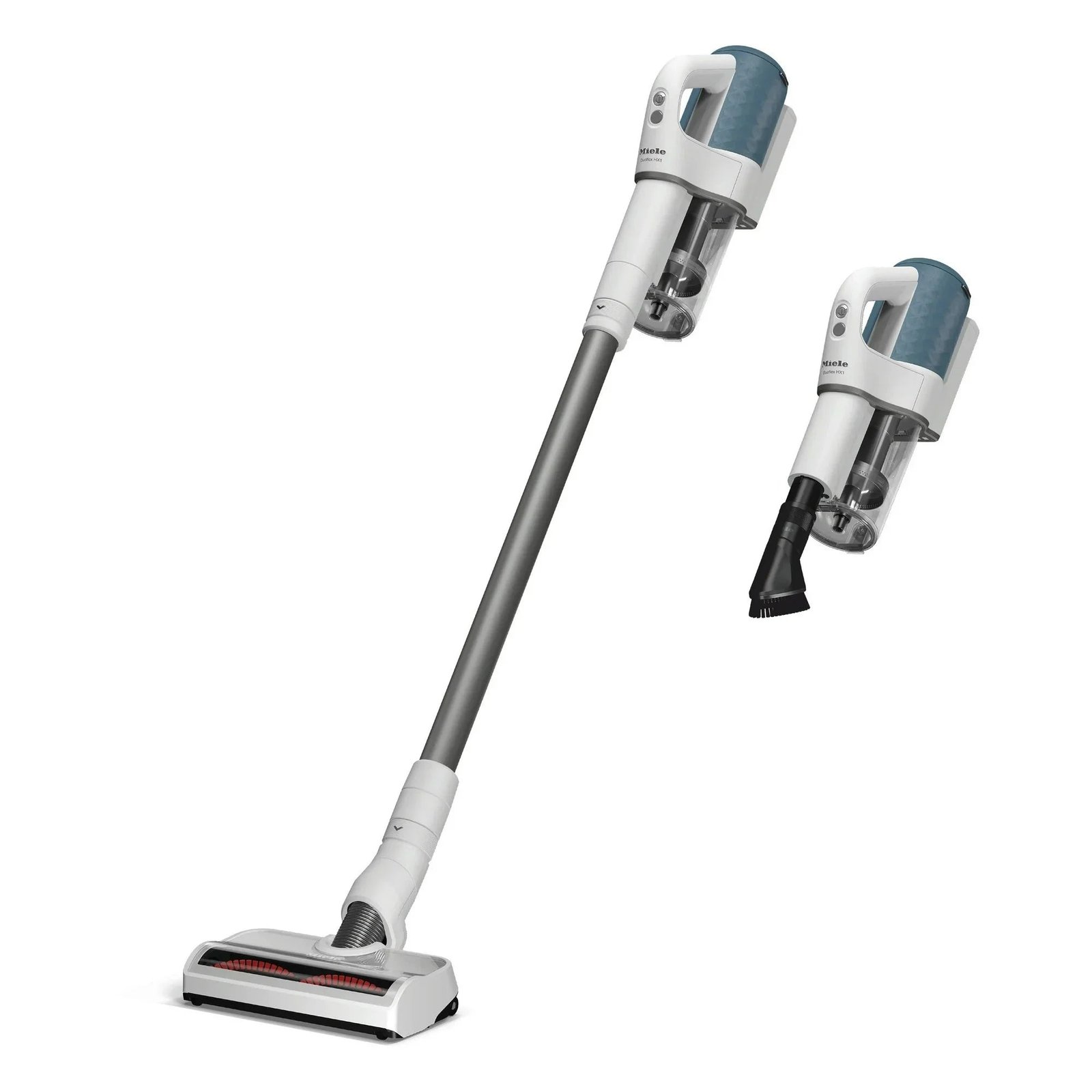 Purchase the Miele Duoflex HX1 Cordless Stick Vacuum Cleaner in Terra Red or Nordic blue, designed for powerful, flexible cleaning across any surface. Equipped with a Digital Efficiency Motor, it provides high suction power, lightweight handling, and long-lasting performance. The MultiFloor electrobrush automatically adjusts its speed based on the floor type for optimal cleaning results. With a lithium-ion battery that offers up to 55 minutes of runtime, this vacuum is perfect for everyday use. Seamlessly blending into your home with its premium design, the Duoflex HX1 offers intelligent cleaning convenience.
