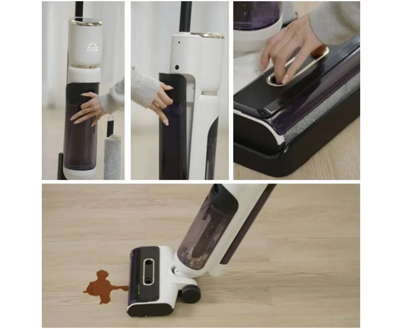 Imass M8 Pro Cordless Hard Floor Vacuum Cleaner, wet & dry vacuum. The Imass M8 PRO Hard Floor Cleaner is a versatile cordless vacuum and mop combination designed for seamless cleaning of hard floors. This all-in-one device effectively vacuums and mops simultaneously, making it an ideal solution for homes with tiled, wooden, or laminate floors. Its smart wet-dry technology automatically adjusts the water flow, ensuring that floors are well cleaned.
