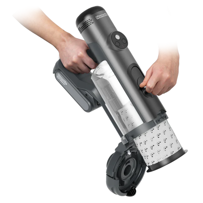 Numatic Quick comes with 6 replacement filter pods, a scent pod to keep the air fresh, and 2 detachable 25.2V lithium-ion batteries, ensuring you’re always ready to vacuum.