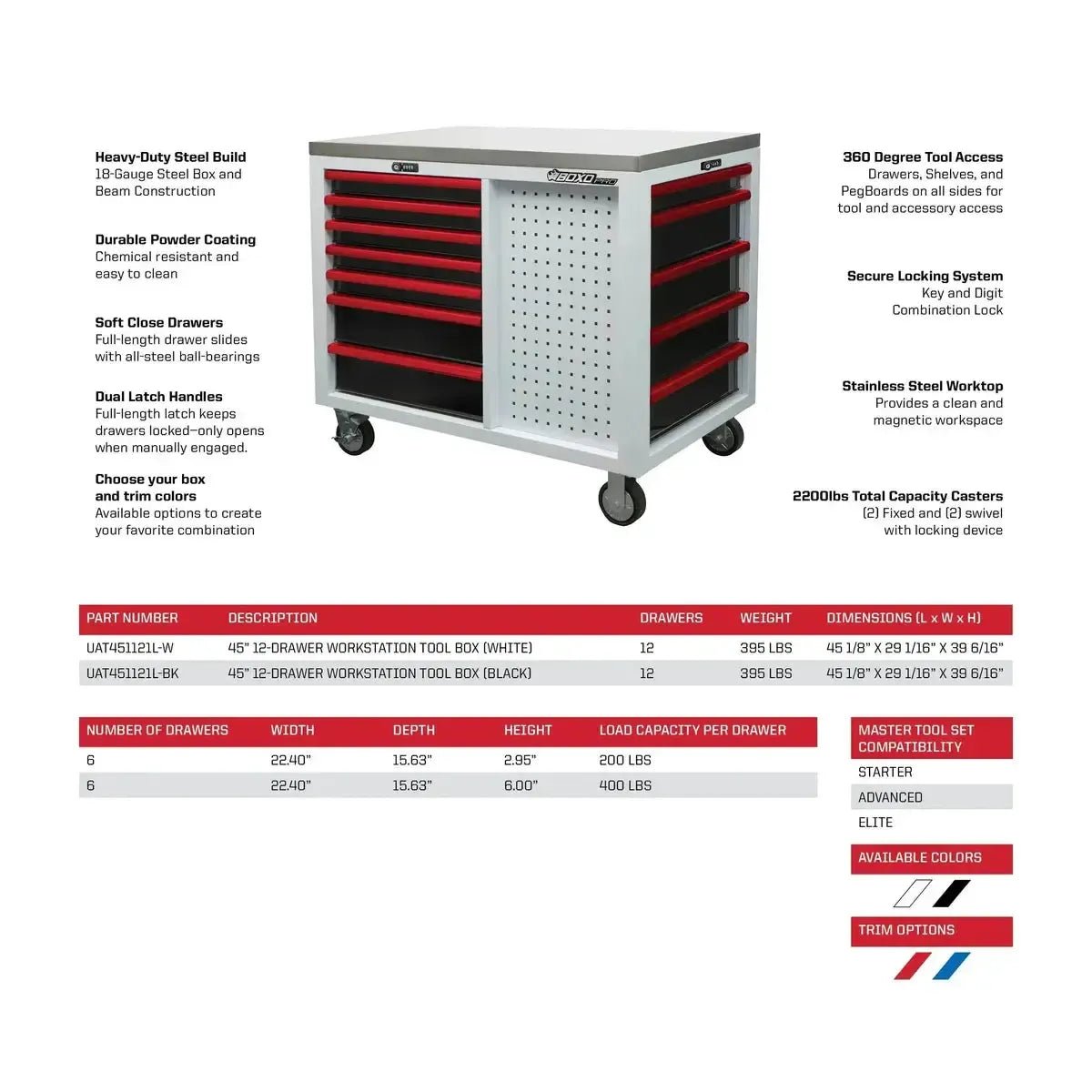Boxo Pro Series | 45” 12-Drawer Workstation Tool Box