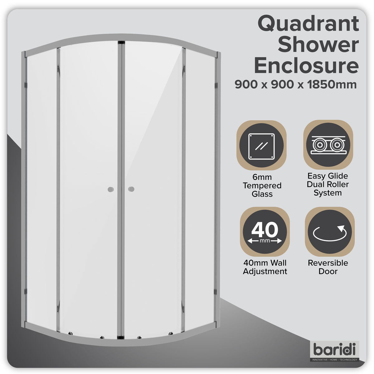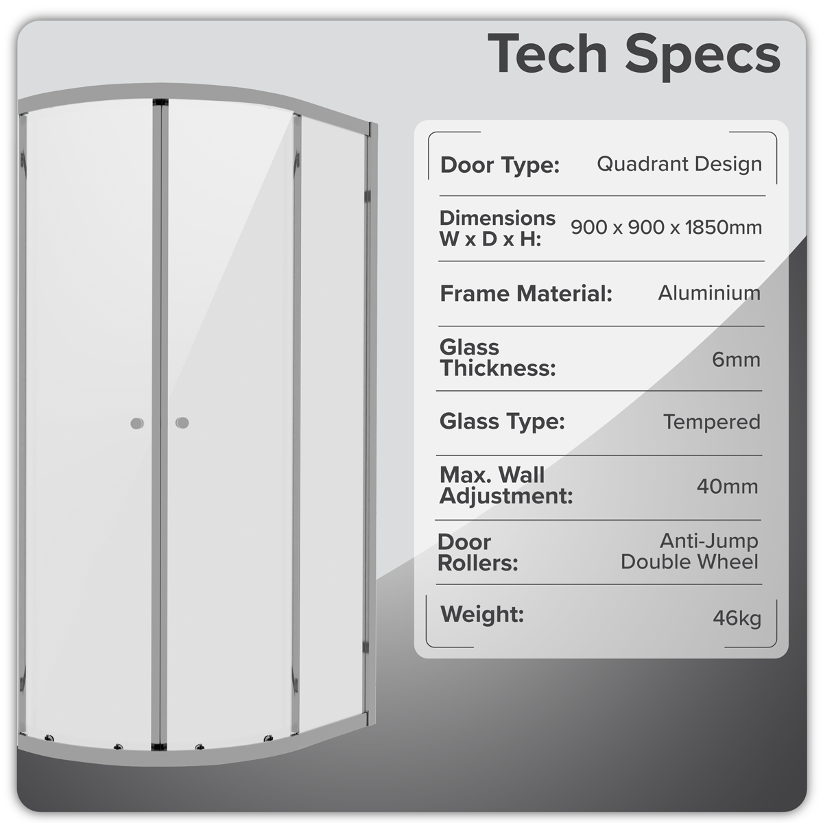 Quadrant Shower Entry Enclosure 900 x 900 x 1850mm with 6mm Tempered Glass – Chrome DH302