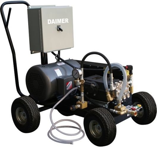 Daimer offers pressure washers in a variety of power configurations for worldwide requirements. The following are available: 110-120V, 208V, 220-240V, 380V, 415V, 440-480V, and 575V; single and three phase; 50 or 60 Hz. Please contact us for pricing.