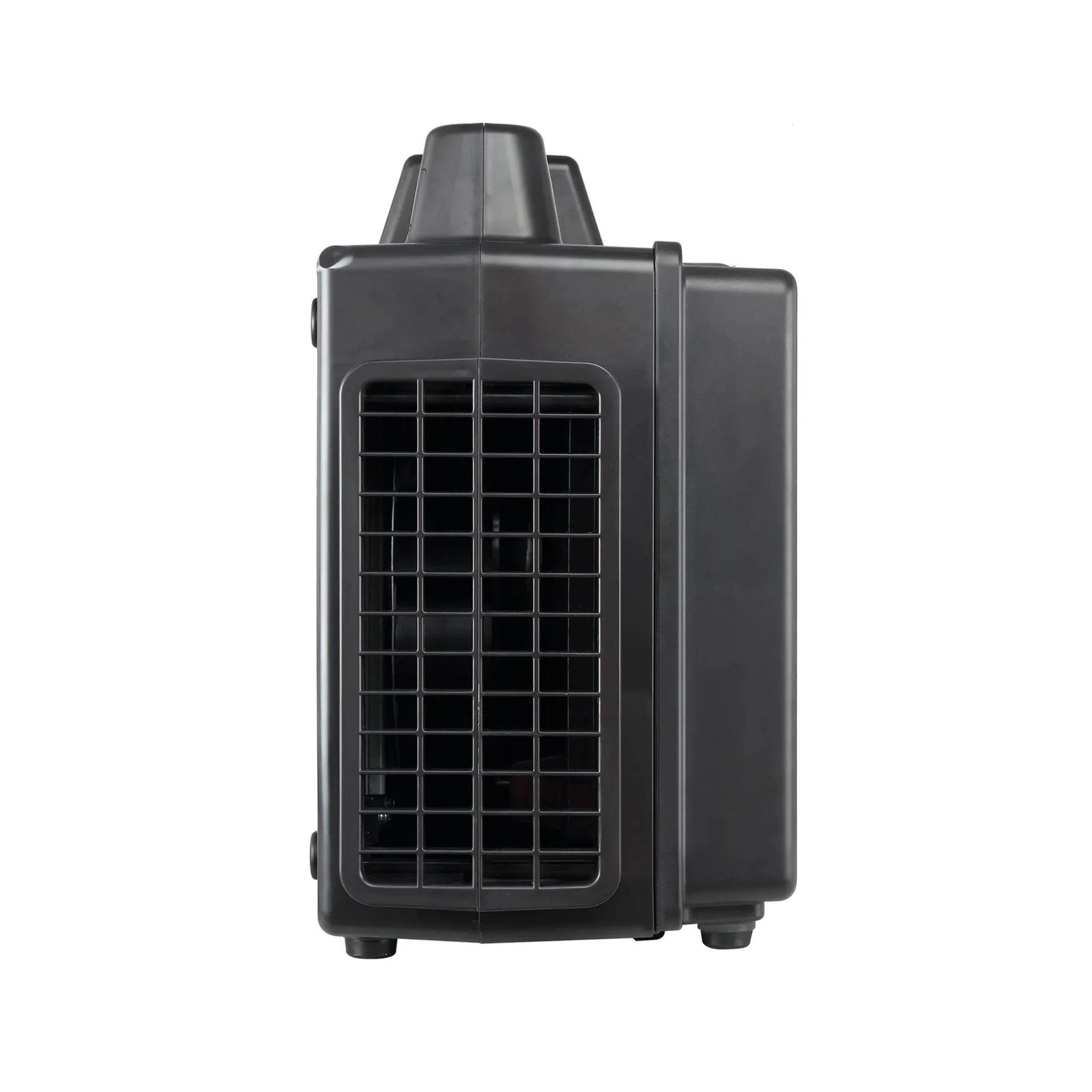 The XPOWER X-2830U adds dual UV-C germicidal lights, an activated carbon stage, a TiO2 photocatalytic filter, and a digital PM2.5 air quality sensor to the core HEPA air scrubber platform — all in a 26.2-lb stackable ABS housing drawing 2.8 amps. Five speed settings from 800 to 2,950 RPM and a timer function support automated after-hours operation. ETL/CETL certified. Xactimate code: AQRS.