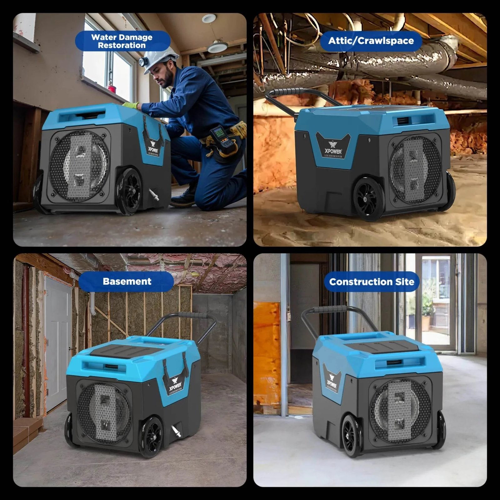 • Bluetooth: XPOWER Connect App — monitor inlet/outlet temp, RH, runtime